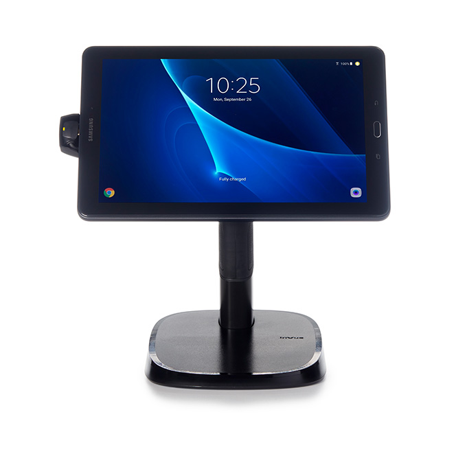 業務で使用するタブレットの充電切れを防ぎ、業務が滞ることを防ぎます。タブレットの角度を任意で調整できるので対面接客やオンライン接客でも活躍するスマートクレードルです。